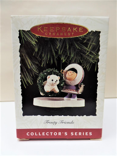 1991 frosty friends #12 1991 frosty friends #12 0 review (s) your price: Out where the world is made of ice, a special friendship's very nice. Hallmark ornament featuring a cute eskimo standing on an ice platform, and holding a glittery green hoop that a polar bear is jumping through.